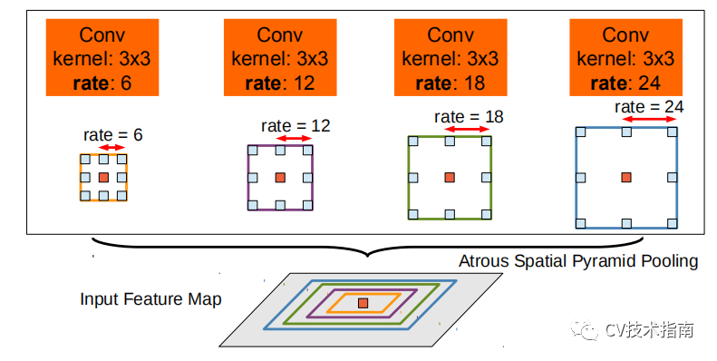 ASPP是基于第二种方式来构建的,具体如下图所示: