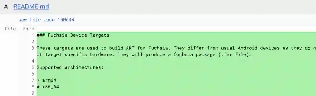 在提交至 Gerrit(Android 源代码管理器)的一项新变化中,Google 在旁边注释了 device/google/fuchsia 资源库的用途(附带了一份 README 文本)。