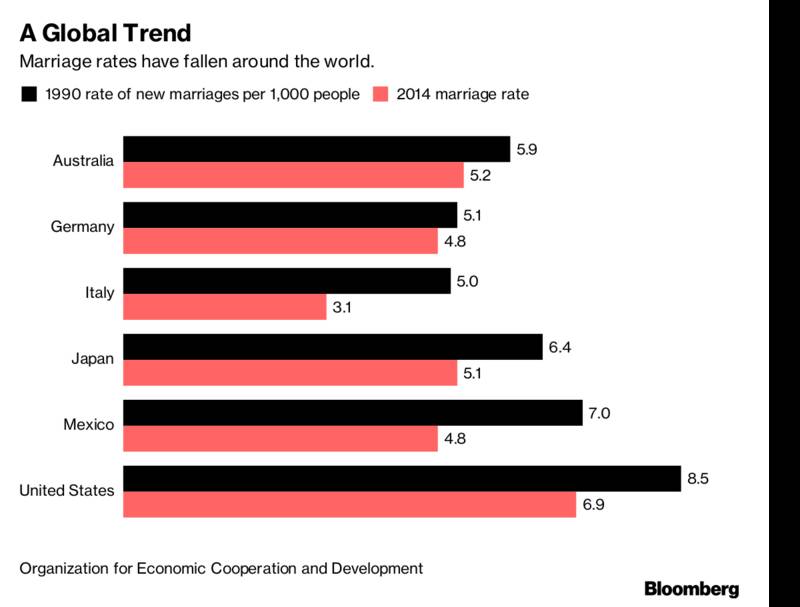 全球趋势:全球的结婚率都在下降
