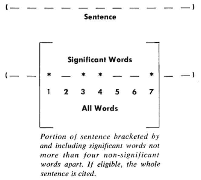 这种方法最早出自1958年的IBM公司科学家H.P. Luhn的论文《The Automatic Creation of Literature Abstracts》。