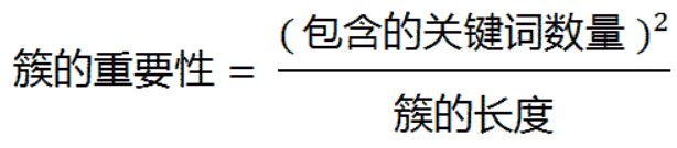 以前图为例,其中的簇一共有7个词,其中4个是关键词。因此,它的重要性分值等于 ( 4 x 4 ) / 7 = 2.3。