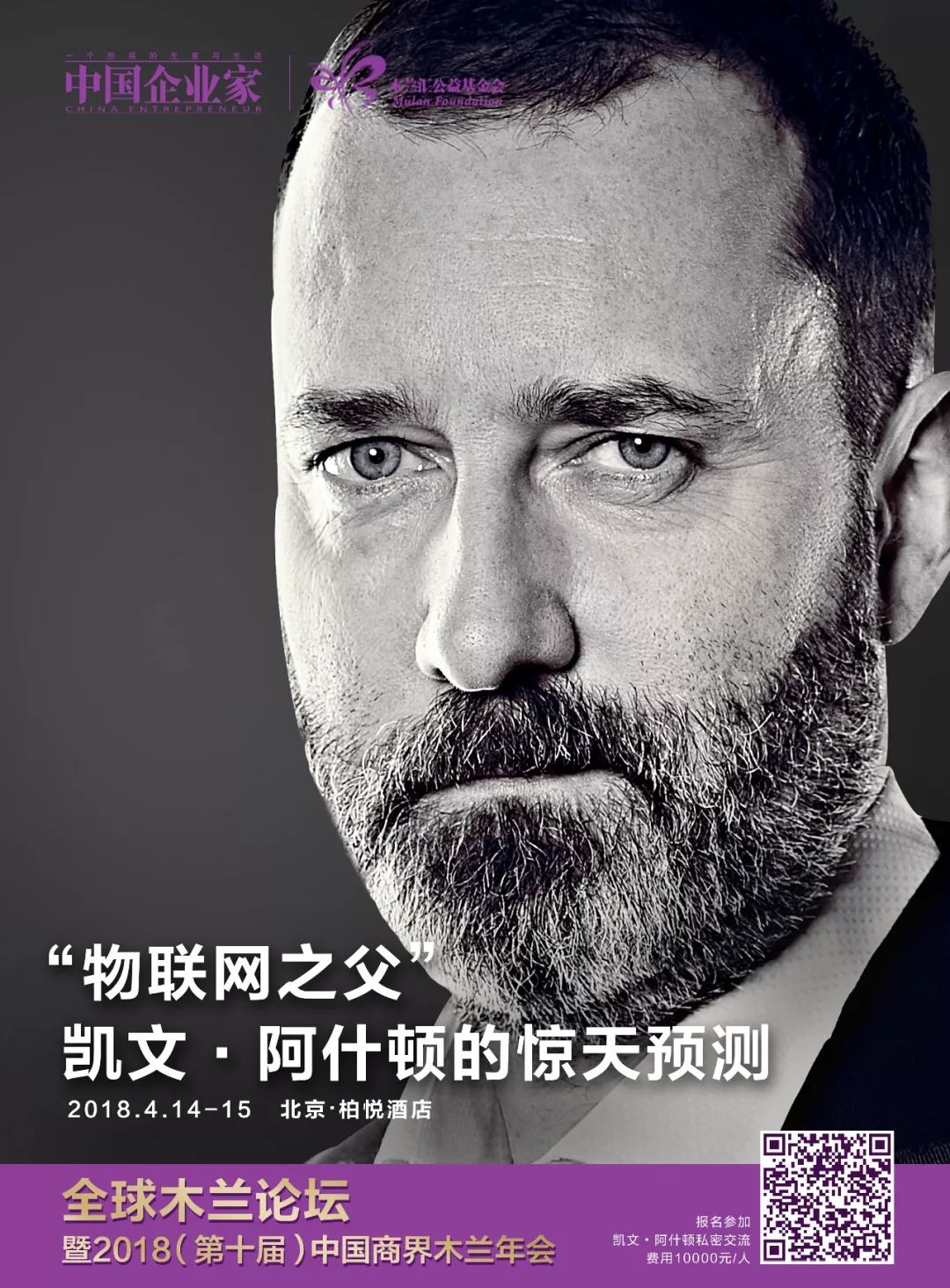 “物联网之父”凯文·阿什顿(Kevin Ashton)已确认出席4月14日由《中国企业家》主办的全球木兰论坛暨2018(第十届)中国商界木兰年会,将在“大师时间”环节进行个人公开演讲,分享他在物联网领域的最新观点,点击二维码参加凯文·阿什顿私密交流。