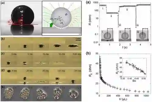 图1.液态金属冲浪效应及金属液滴-池界面间薄液膜的台阶形电阻响应现象