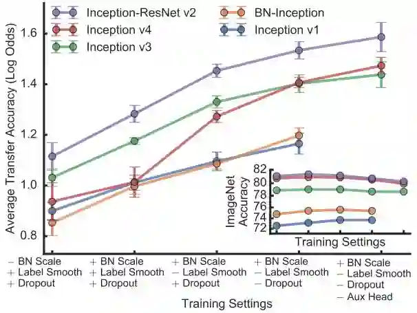 答案很大程度上是肯定的!Google Brain的大量实验证明,无论是把神经网络倒数第二层直接拿出来做预测,还是把预训练模型对新应用进行“二次训练”,好的imagenet预训练模型普遍有更好的迁移学习效果: