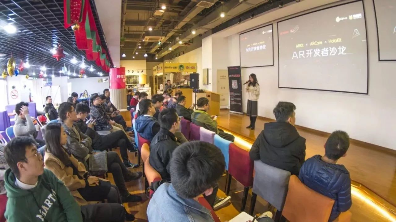 9日下午,由易VR、AR酱、蜜蜂网联合主办的AR开发者沙龙在上海IC咖啡举行。活动围绕ARKit、ARCore、HoloKit等技术,邀请到HoloKit创造者、硅谷Amber Garage创始人胡伯涛、HoloKit中国区负责人杨忠雄、网易《悠梦》游戏策划王鑫、网易游戏艺术创新者吴昊、独立开发者Seto Kaiba等嘉宾,对AR行业现状、技术发展、应用开发等话题进行了探讨,吸引了不少上海本地AR从业者及爱好者前往参与。