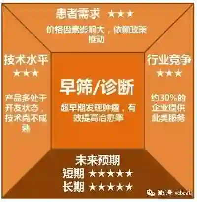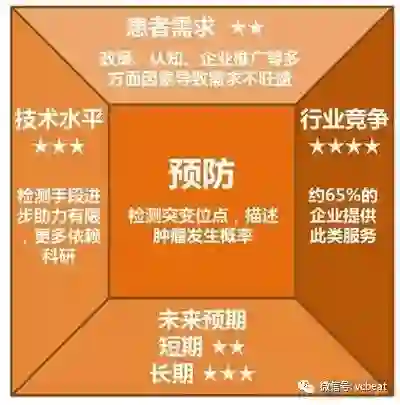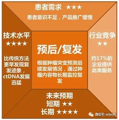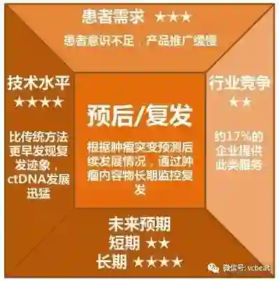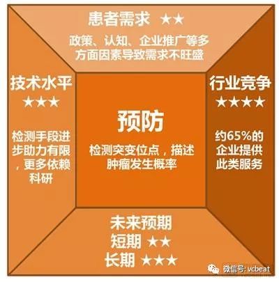 3.对肿瘤基因检测行业未来可能发生的重心迁移进行了预测。预计肿瘤基因检测行业的中心可能会沿诊疗流程逐步前移,尤其是从治疗端向早筛方向延伸。