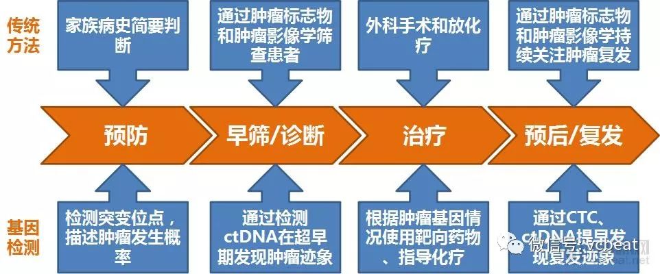 图 6:肿瘤基因检测与传统方法切入诊疗阶段对比