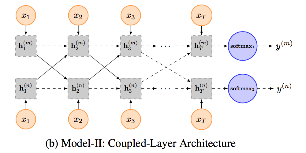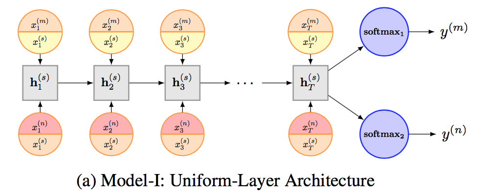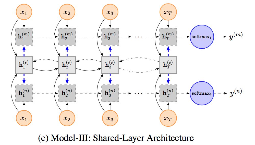 在第二个模型中,为每个任务都指定了「特定」的LSTM layer,但是不同任务间的LSTM layer可以共享信息。