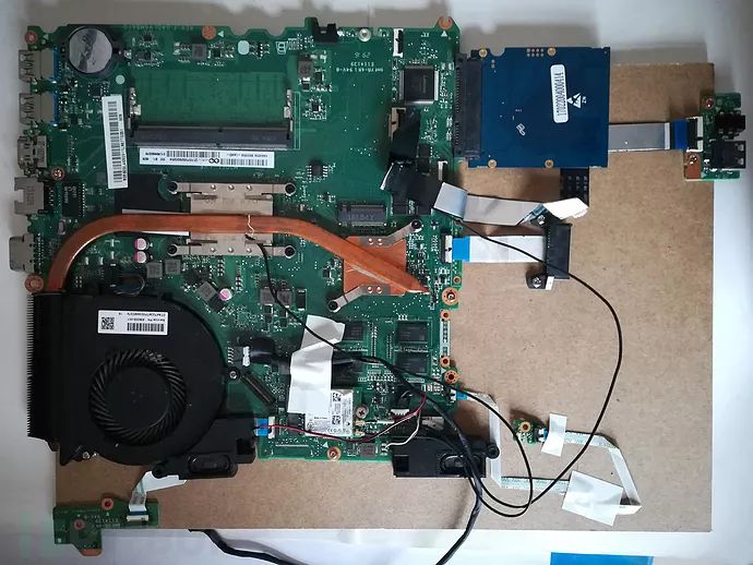 由于是笔记本主板,所以还自带了喇叭,无线网卡(集成了蓝牙模块)等。