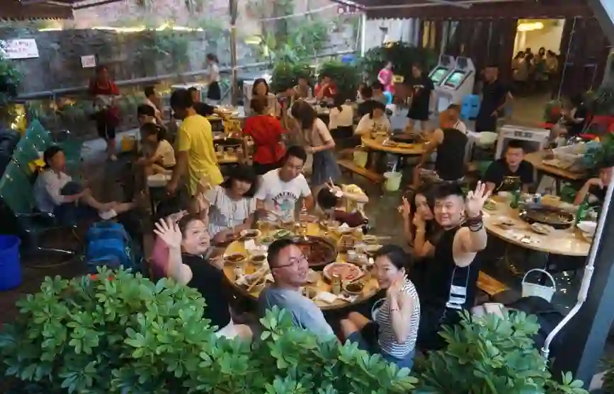 这不,最近重庆有一家新开的火锅店,为了吸引顾客想了个新点子,在院子里打造一个水池,直接把火锅的桌子搬进了水池里,让顾客边吃火锅,边泡脚。