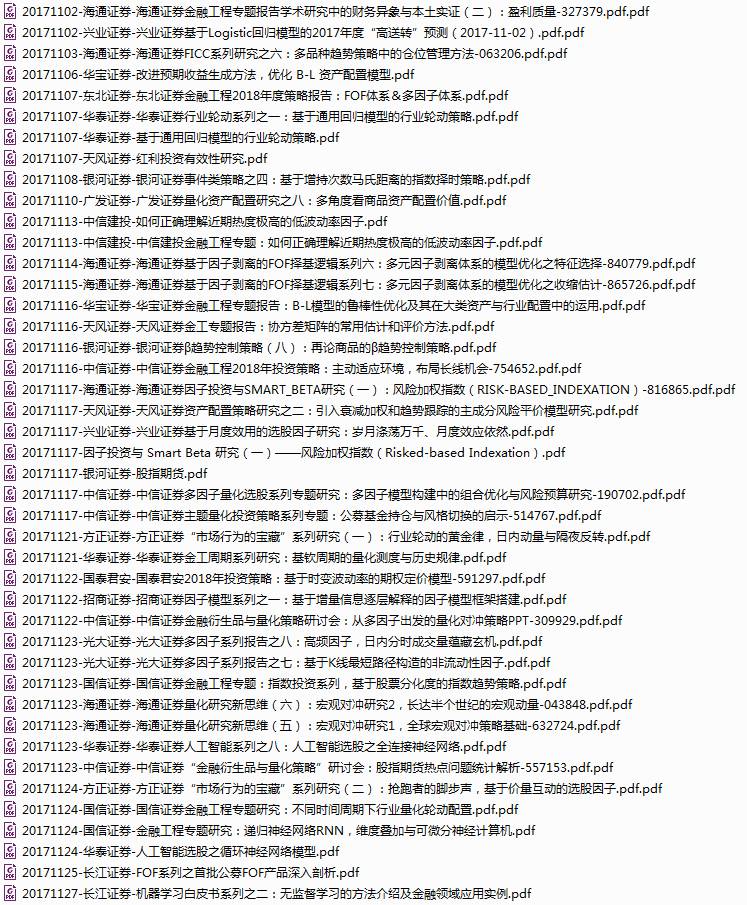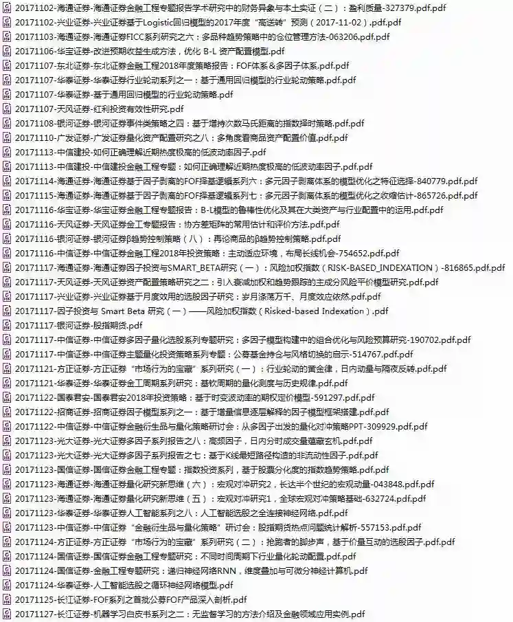 2017年10月所有券商金工研究报告