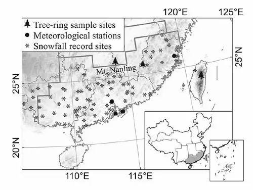 中国系统的气象观测始自20世纪50年代,利用高分辨代用资料重建高信度的温度变化序列,是补充仪器观测资料不足、了解过去气候变化的重要途径。中国科学院地理科学与资源研究所研究员郑景云和博士刘洋等利用华南区域文献记载的冬季降雪南界和树木年轮资料,通过高低频信号分解回归再合成的方法,重建了1850-2009年华南地区年平均气温变化序列。