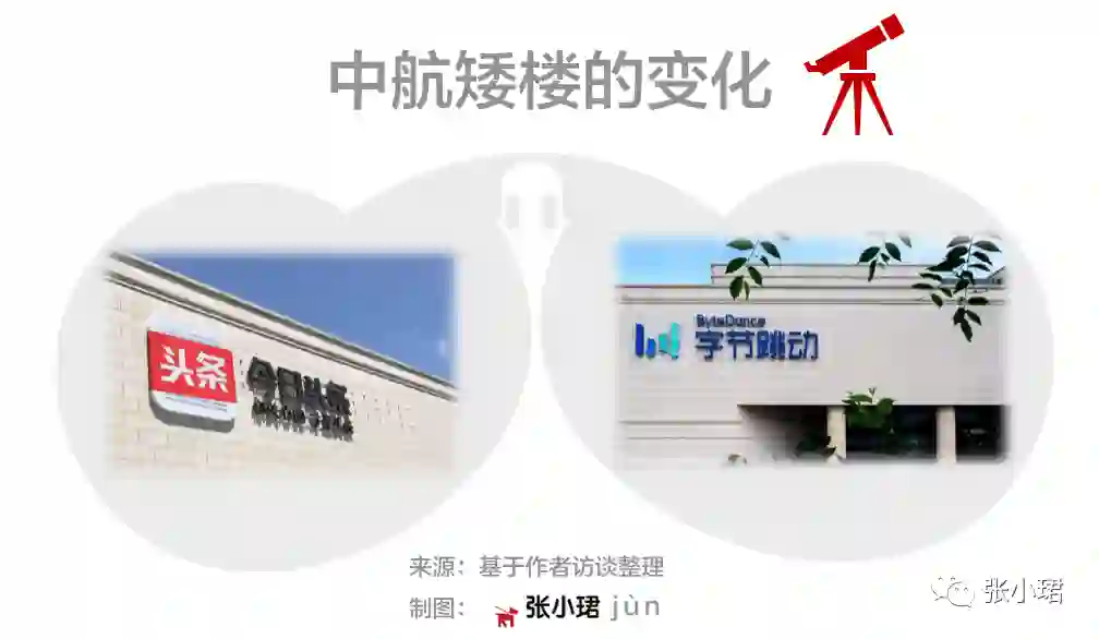 张一鸣领军走向全球的启航地,是坐落于北京海淀知春路甲48号的中航矮楼。2016年伊始,员工随高层乔迁至这栋矮胖,只有两层高的方形、米白色建筑内。这里原是航空博物馆所在地,