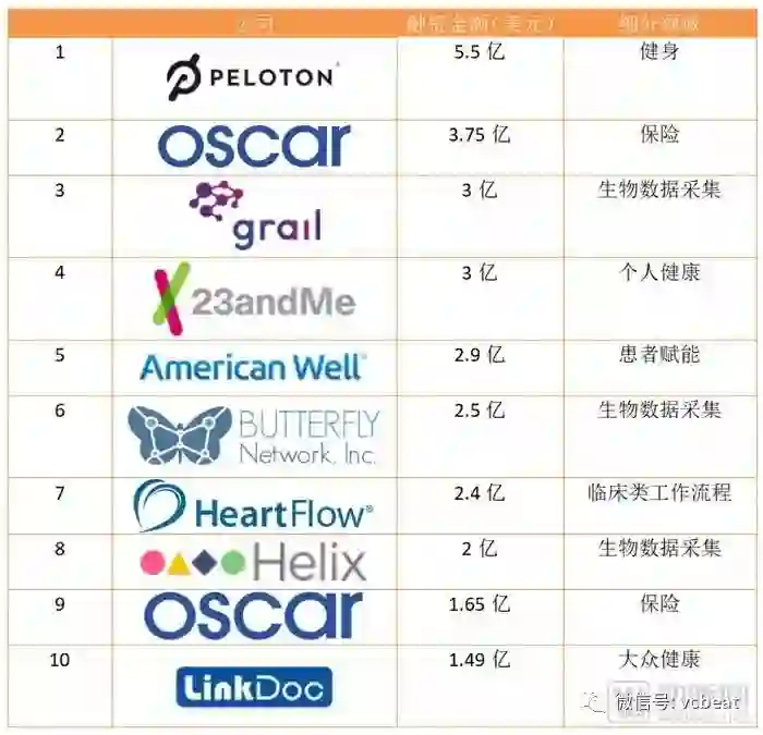 Startup Health 数字医疗投融资TOP榜单