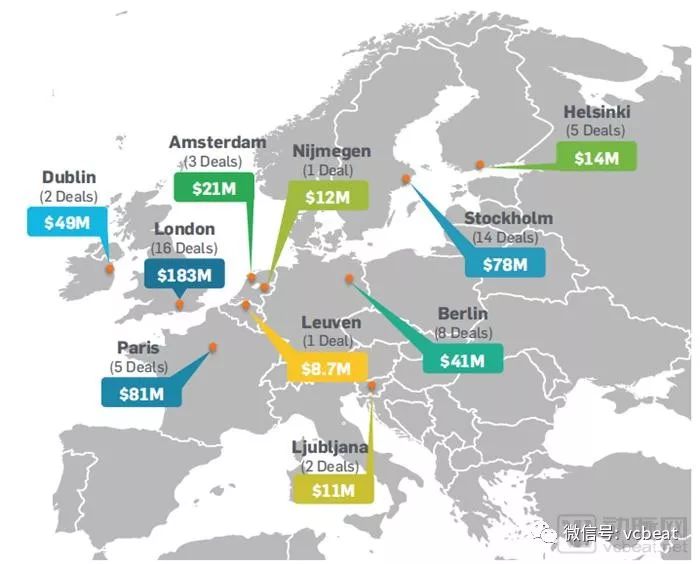 3.纽约仍然是美国投融资最活跃的地区,伦敦在欧洲遥遥领先。