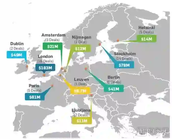 伦敦和巴黎是2018年第三季度欧洲投融资总额最高的城市,但Ljubljana和Nijmegen等较小城市的融资规模也有所上升。
