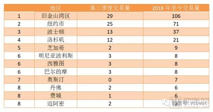 2018年十大美国之外的交易中,有六起来自第三季度,北京有5家企业,浙江有2家。LinkDoc和Medlinker等总部位于北京的公司,本季度完成了近1.5亿美元的交易。