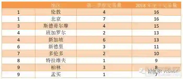 第三季度中,北京完成了七笔交易,投融资额达到7.21亿美元。尽管北京仍保持着上升趋势,但伦敦和斯德哥尔摩等大都市区产生了更多的早期轮次融资,使其仍保持在榜单前列。