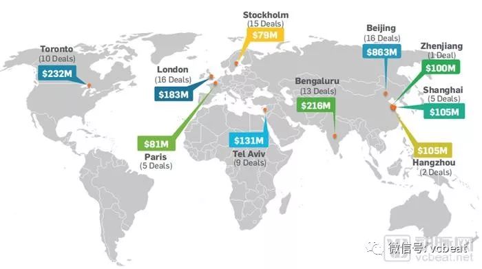 中后期交易数量创下纪录,推动了基金增长和市场成熟。国际投资数量激增,前10大国际交易中,有五起发生在中国,欧洲城市提供了大量的早期轮次融资。