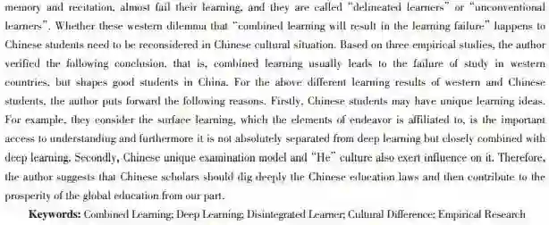 关键词:融合性学习;深层学习;脱节型学生;文化差异;实证研究