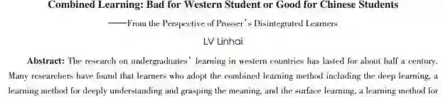 引用:吕林海(2018).融合性学习:西方学生的梦魇,抑或中国学生的圣境——从普洛瑟的“脱节型学生”说起[J].现代远程教育研究,(2):45-52.