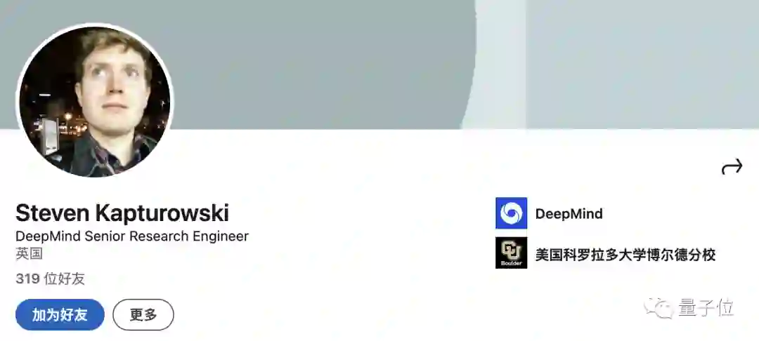 他毕业于美国科罗拉多大学博尔德分校,曾在苹果、微软、Glassdoor等公司工作过,现在是DeepMind的一名高级研究工程师。