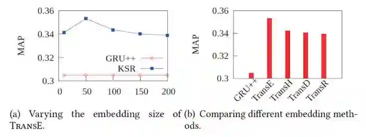 (3)不同的KG embedding方式和选择的向量维度对实验结果的影响