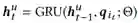给定一组用户u的交互序列,GRU模型的隐藏层表示成