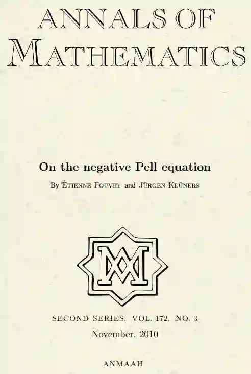 2010 年,一篇发表在《Annals of Mathematics》上的论文表明适用于负佩尔方程的 d 值的比例在一定范围内。为此,论文作者 Étienne Fouvry 和 Jürgen Klüners 掌握了相关类群的某些元素的行为,并需要了解更多元素,才能了解 Stevenhagen 更精确的 58% 估计。不幸的是,有些元素仍然难以理解:仍然需要新的方法来理解它们的结构,几乎不可能有进一步的进展。