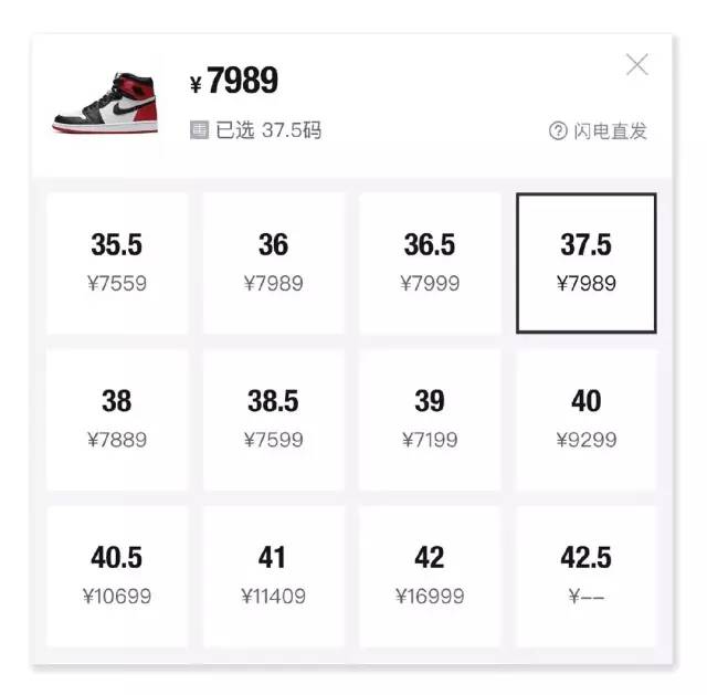 发售当天,二级市场的小尺码鞋像火箭一样冲上8000元,40码以上的红丝绸更是突破一万元,向两万元进发。