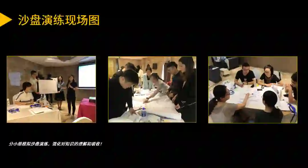 升级后的课程,增加了多次现场沙盘演练,帮助学员更好地拆解案例内容与知识点的吸收应用。
