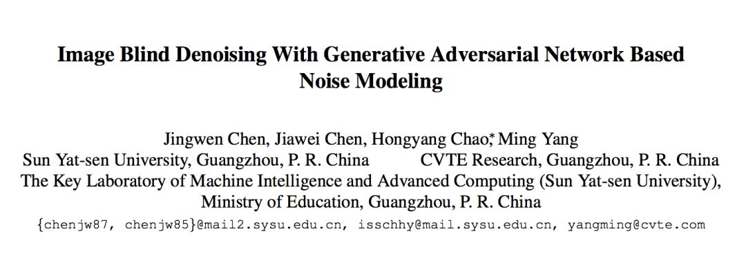 Image Blind Denoising With Generative Adversarial Network Based Noise Modeling 是中山大学和 CVTE 发表于 CVPR 2018 的工作,该文章通过利用 GAN 对噪声分布进行建模,并通过建立的模型生成噪声样本,与干净图像集合构成训练数据集,训练去噪网络来进行盲去噪。