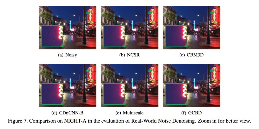 可以看到利用 GAN 估计的噪声比 GMM 估计的噪声更接近与真实图像噪声。作者认为原因是 GMM 中高斯模型的数量以及显式地对噪声进行建模会限制 GMM 的估计能力,而 GAN 则是隐式地对噪声进行估计,所以效果会更好一些。