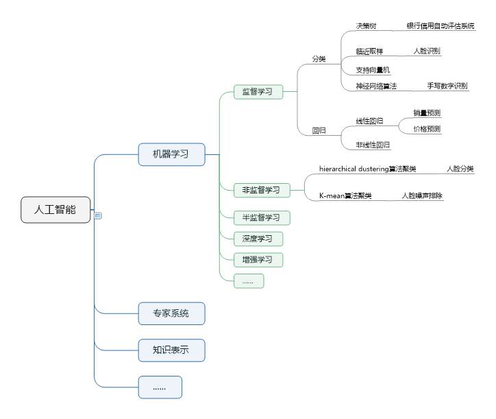 如图所示,人工智能是一个大类,包括专家系统、知识表示、机器学习等等,其中机器学习是目前最火也是发展最好的一个分支,机器学习中又包括监督学习、非监督学习、深度学习,增强学习等等。