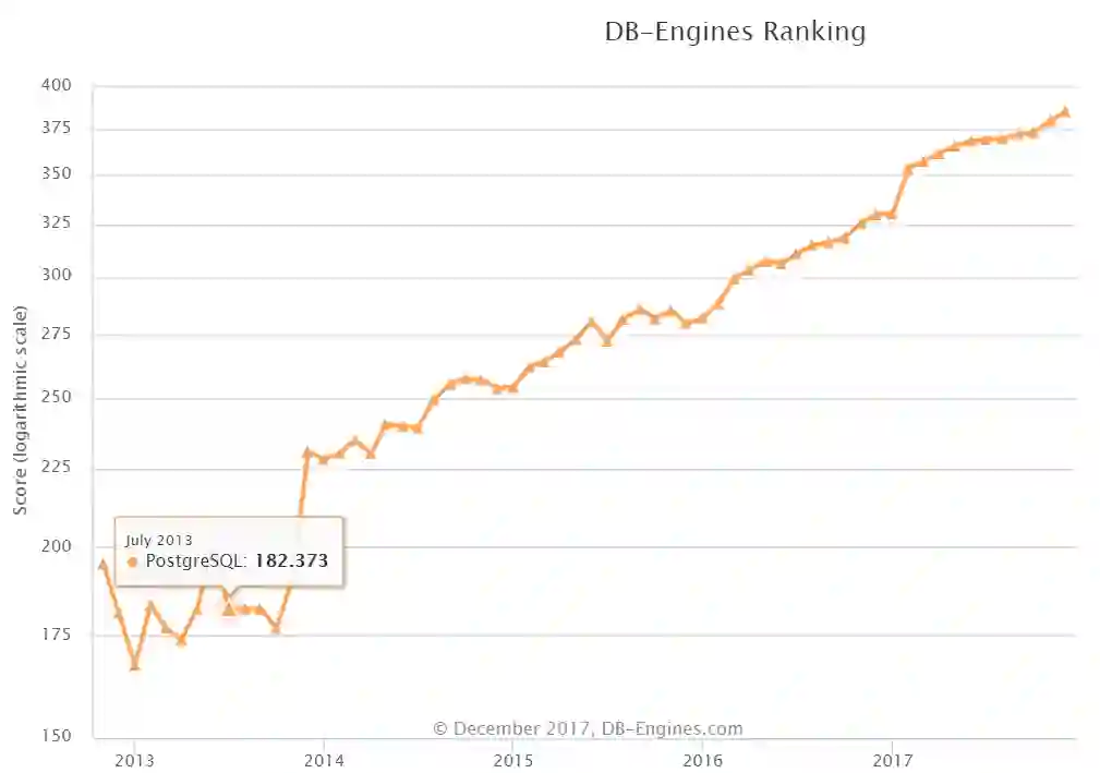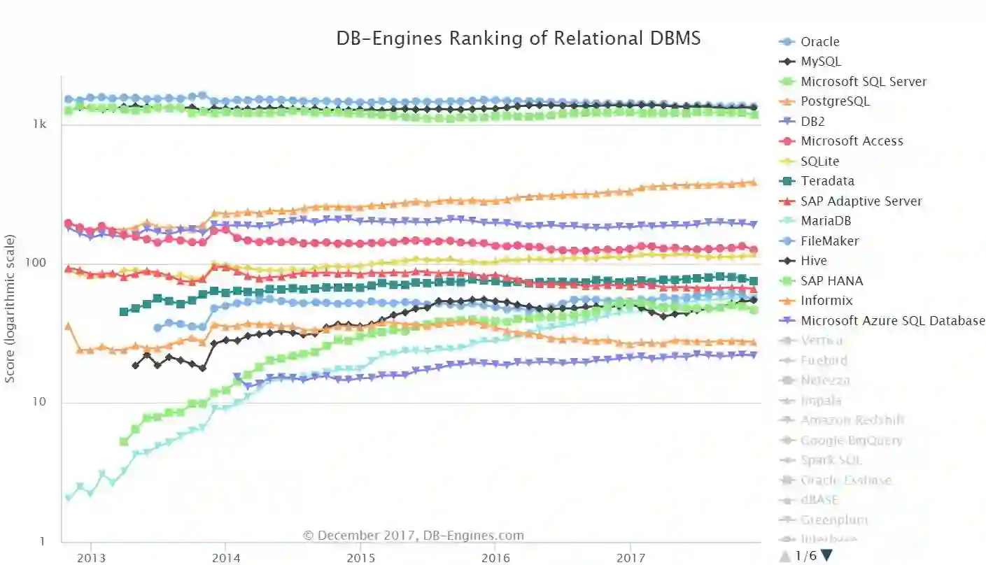 而前五名中只有 PostgreSQL 发挥最稳定,近年来一直保持上升趋势,虽然与前面三大数据库得分还有一些差距,但一众开发者纷纷表示看好 PostgreSQL,相信接下来应该不会让大家失望。