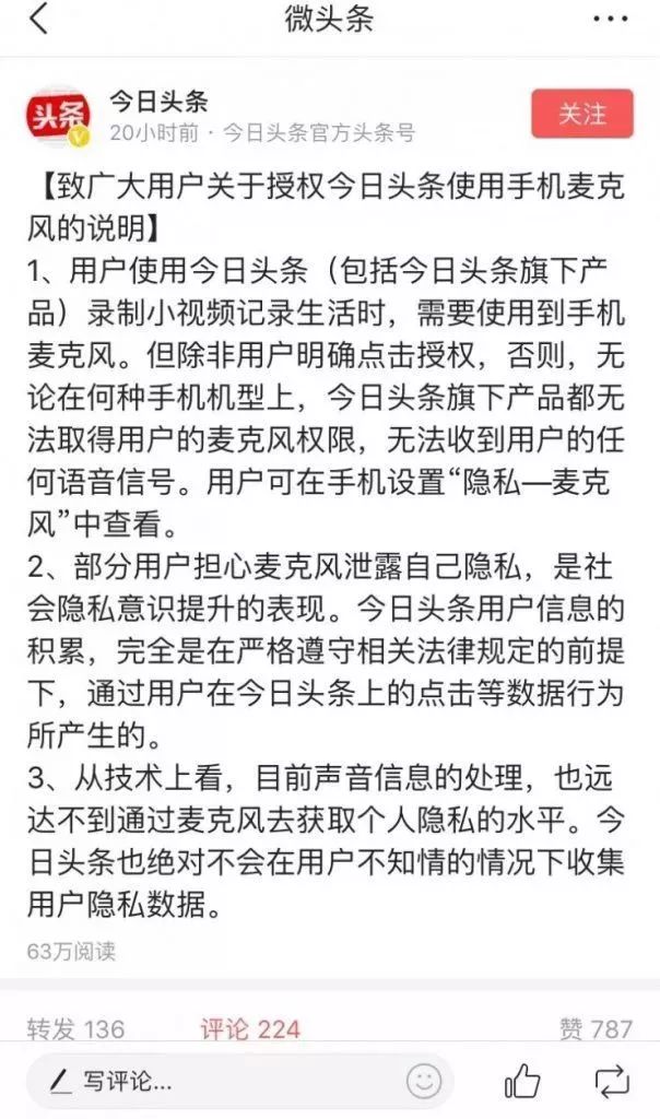 不知道大家是否还记得此前今日头条被质疑通过手机麦克风获取个人隐私的事?今日头条也很快澄清,称目前声音处理的技术水平,远达不到通过麦克风去获取个人隐私的水平。