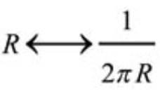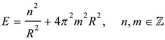这儿有一件非常有意思的事。如果我们把 R 和 1/2πR 互相代换(如下面式子所示),这一系列能量谱将会保持不变。