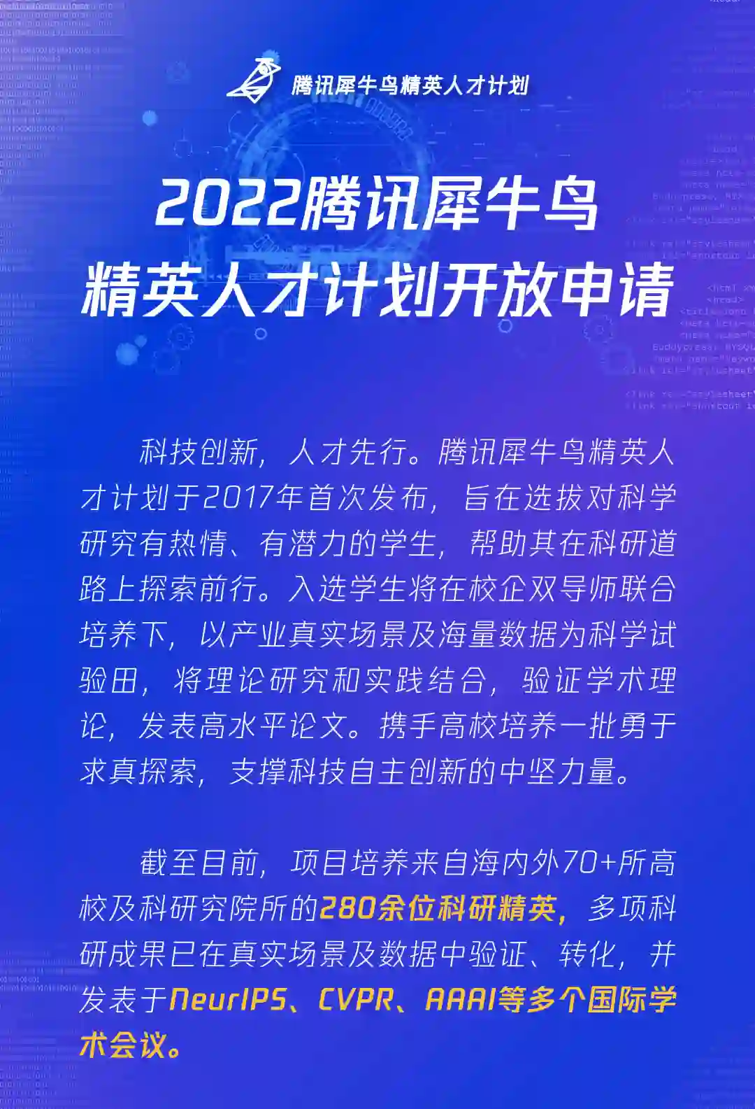 感谢阅读腾讯AI Lab微信号第134篇文章。本文将介绍2022犀牛鸟精英人才计划。