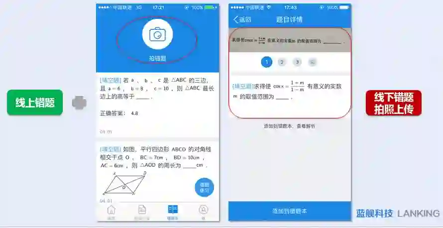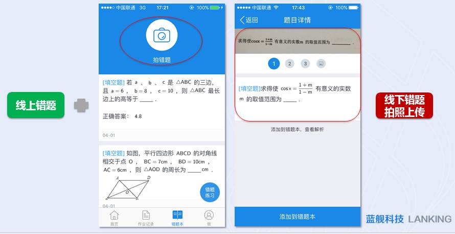 线上线下错题收入后台大数据之中用于下一步学习巩固