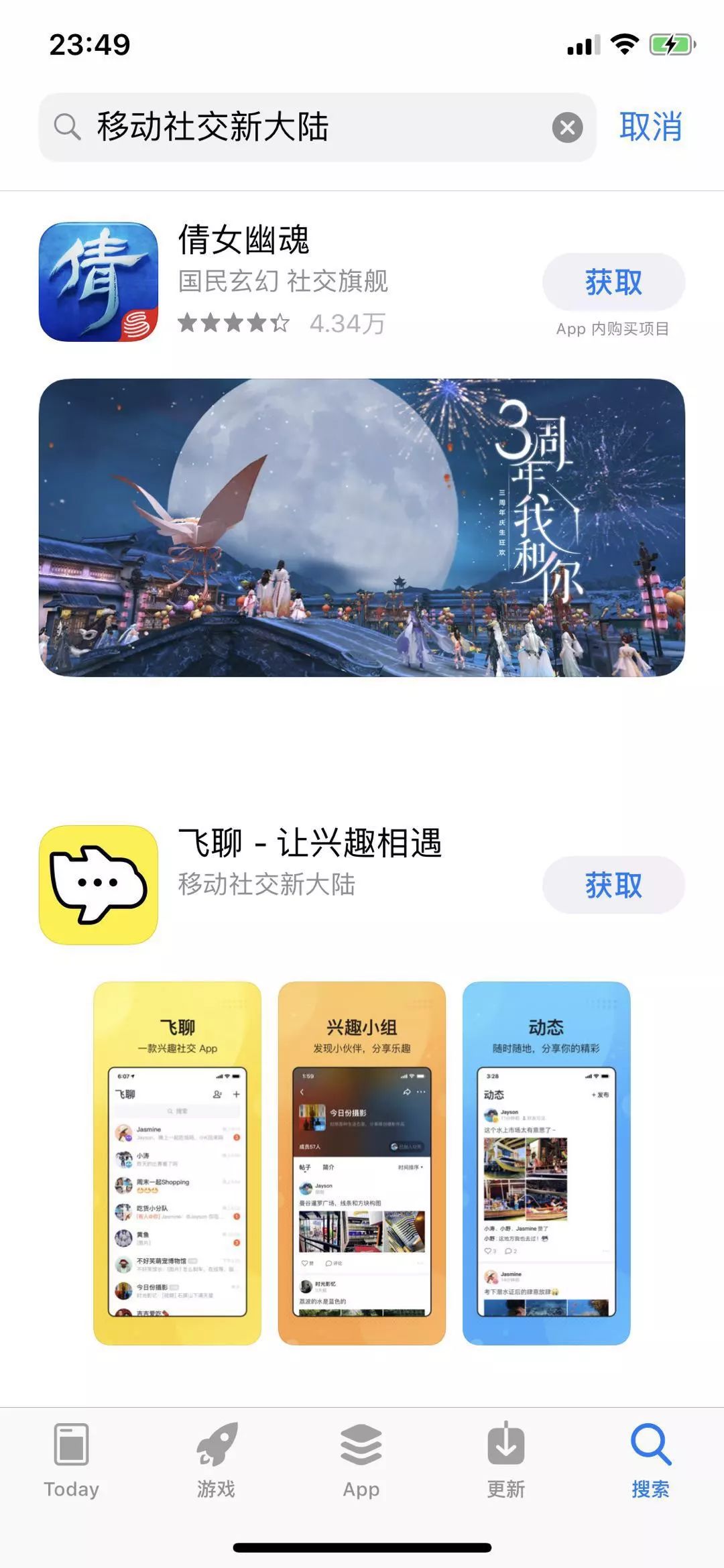 有用户提到,在社群的概念上,“飞聊”更接近于豆瓣和即刻app。这两家都有大量兴趣小组,也鼓励用户发布图文和视频状态,并从关注的组群中接触到陌生人。