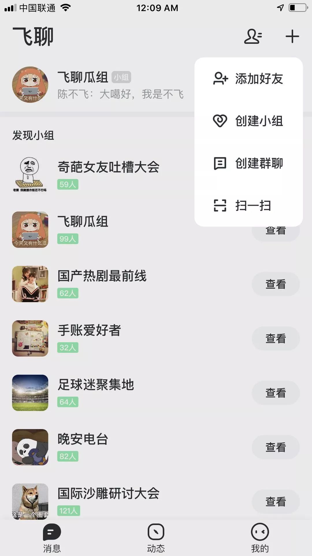 这个问题也适用于飞聊。目前,飞聊的做法是从社群入手,用户在加入一个个群之后,有机会接触到更多陌生人,并可以随时加好友,开启社交,类似于微博等开放社交平台。