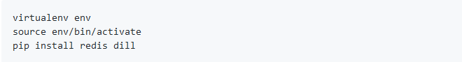对,你做到了。然后我们创建一个Python虚拟环境来管理依赖库。我们需要redis的Python链接库和dill。