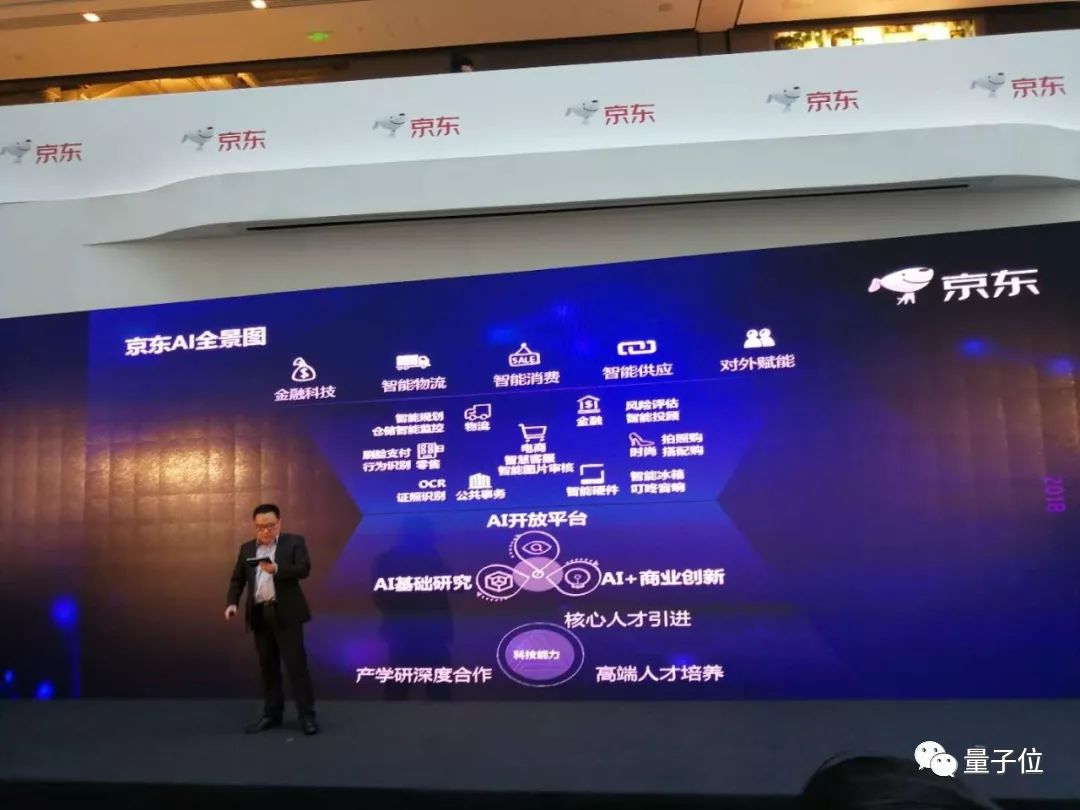 并且在转型第二年,也就是2018年4月,当时的京东集团副总裁、AI平台与研究部负责人周伯文,首次以清晰的面貌将京东人工智能布局浮出水面。