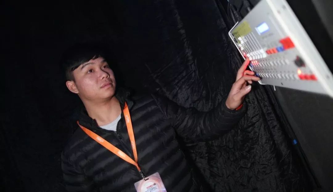 25岁的电工小哥黎文秀,专心只干一件事:负责罗胖上下台的楼梯灯光,上台关灯、下台开灯。