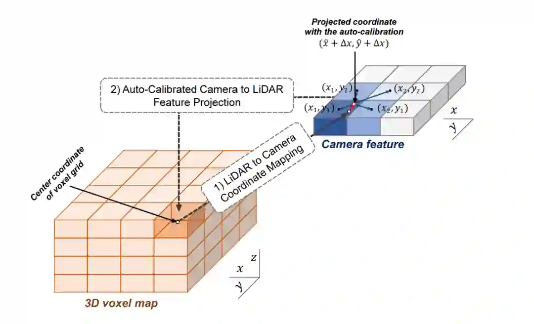 这样,作者就得到了了image信息的feature-map在lidar-voxel上的表示,值得提到的是前面说的偏移值是为了更好的使camera和lidar对齐。这里的第二步也就是为了解决上面提到的做标偏差的问题。