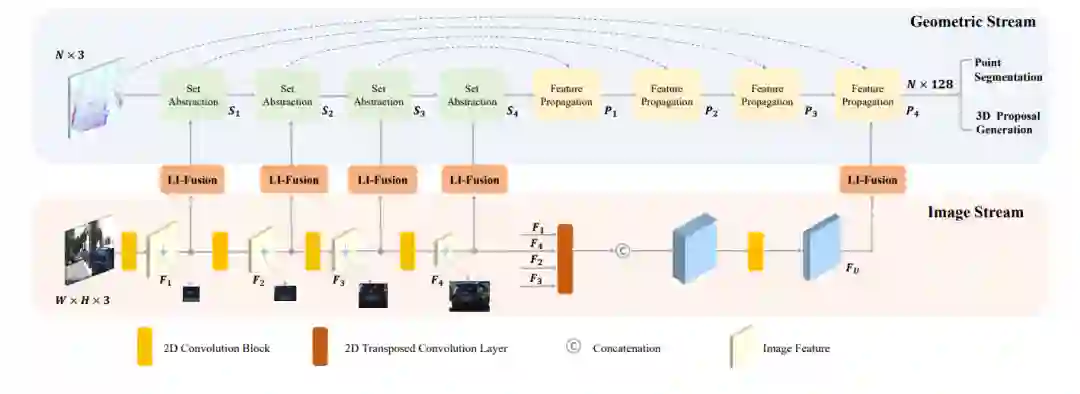 发表在AAAI20,point分支和image分支分别做3D目标检测任务和语义分割任务,然后将图像语义分割的特征通过索引加到proposals的内部的点云上做二次优化。