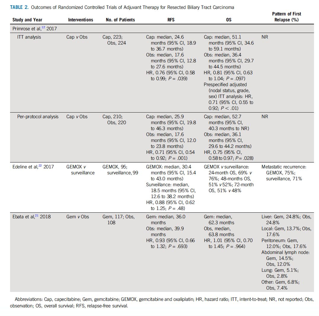 表2. 胆管癌辅助治疗相关研究的结果汇总