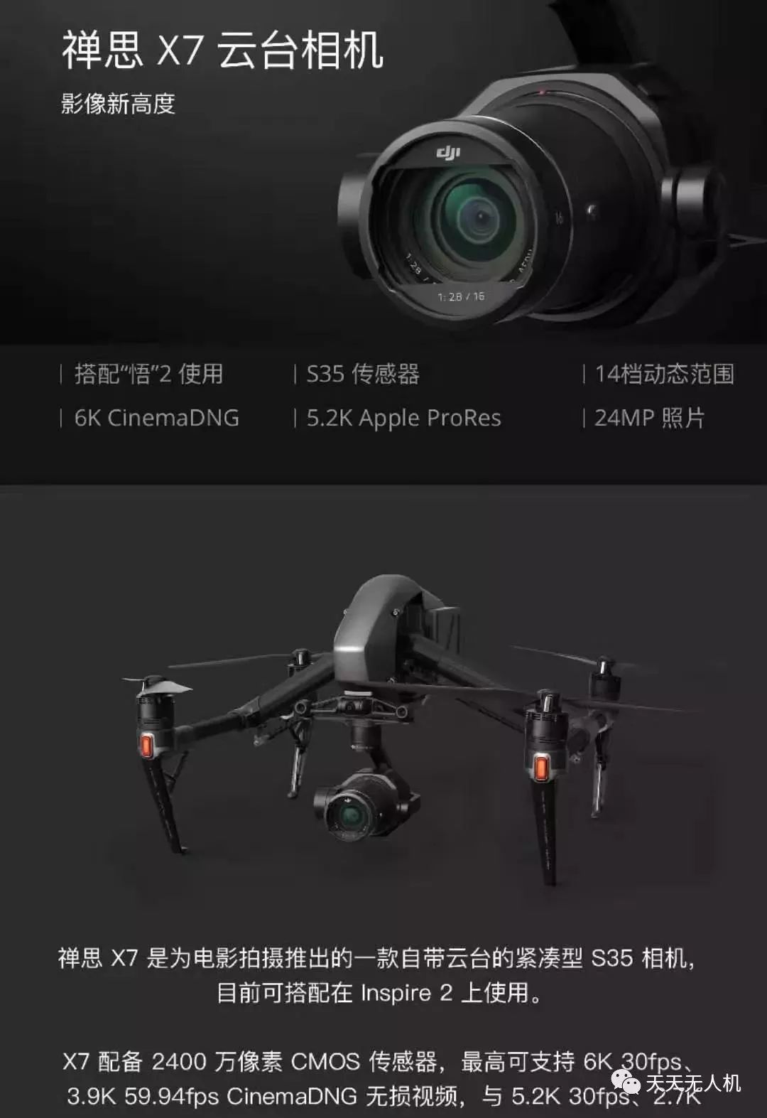 大疆X7相机最高分辨率6K。