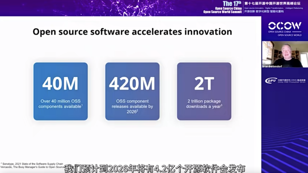 OpenSSF 基金会总经理 Brian Behlendorf 指出,根据研究数据显示,预计到 2026 年将有 4.2 亿个开源软件会发布,届时软件包下载量高达 2 万亿,大量开源软件渗透到各种各样的设备中。不幸的是,开源软件在广泛应用的同时也带来了安全的困扰。为了实现更好的开源安全,Brian Behlendorf 提出了四点建议,即基于客观测量的工具来度量代码的可信度;鼓励开发者进行更好的安全实践过程;鼓励团队合作和共同承担安全责任的工具和流程;把“默认”添加到以上所有东西上。