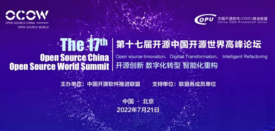 2022年7月21日,由中国开源软件推进联盟主办,赛迪传媒、《软件和集成电路》杂志社联合承办,CSDN 独家直播的“第十七届开源中国开源世界高峰论坛”在云端盛大召开。本场论坛以“开源创新 数字化转型 智能化重构”为主题,邀请了国内外开源领域的知名学者、产业领袖、开源大师等,大家从构建开源生态、创新开源技术、促进开源应用落地等方面展开深入研讨,分享开源赋能之用,碰撞开源发展之道,为开源事业持续发声。